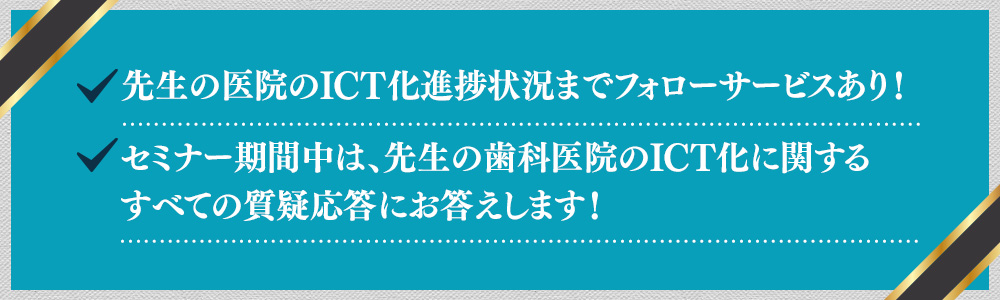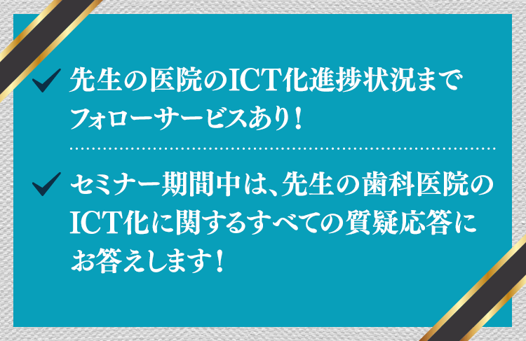 ・セミナー期間中は、先生の歯科医院のICT化に関するすべての質疑応答にお答えします!